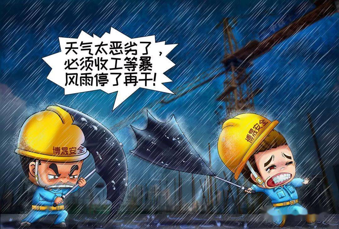 作業現場遇有大風、暴雨、雷電、大雪、大霧等惡劣自然天氣時,不準登高。