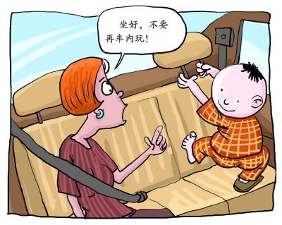 兒童在車內玩耍時,喜歡在座椅上蹦蹦跳跳,動動這里扳扳那里,隨意開關電動天窗與車窗,易將自己的頭或手腳卡住。一旦行車速度突然改變或大角度轉彎,都有可能使兒童受傷。