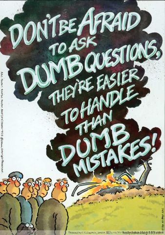 圖02 這幅漫畫(huà)也很有趣,一架墜毀的直升機(jī)冒出滾滾濃煙,其中的文字是,“別擔(dān)心你提出的問(wèn)題太弱智,弱智的問(wèn)題總比弱智的錯(cuò)誤更容易對(duì)付”。