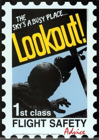 圖12 這同樣是一幅提醒防止空中相撞的漫畫(huà),黑白色調(diào)特別引人注目,上面的文字是,注意!天空可是個(gè)繁忙的地方!