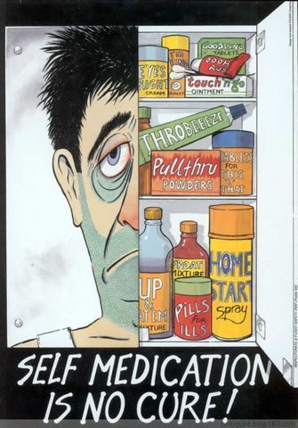 圖17 私自濫用藥物是飛行人員的大忌。這幅漫畫(huà)上的文字是:私自用藥無(wú)益!這是在提醒飛行人員要到符合規(guī)定的醫(yī)療機(jī)構(gòu)就診和獲得藥品。