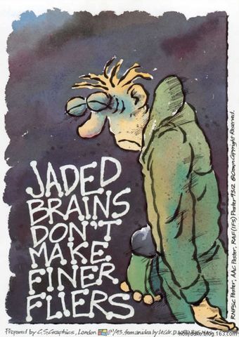 圖19 這是提醒飛行員注意避免疲勞駕駛的漫畫(huà),上面的文字是:疲憊的頭腦造就不出優(yōu)秀的飛行員。