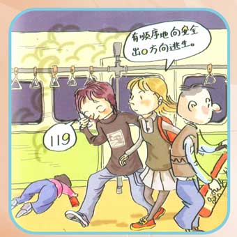 | 車廂內發生火災時,乘客可直接撥打119、110電話報警。也可以按動車廂內的報警按鈕。 | |