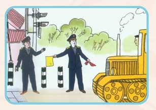 | 行人和車輛,通過有人看守的鐵路道口時,應按照交通信號和管理人員的指揮通行。 | |