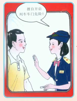 | 乘客不得移動線路上的機動車輛,或者擅自開啟列車車門。 | |