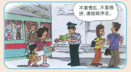 | 在站臺候車遇到停電時,聽從工作人員指揮,按照站臺內的疏散指示標志,安全有序地撤離至地面。 |