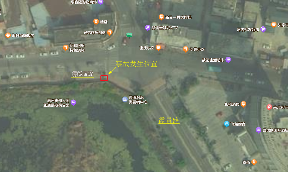 事故發生位置為大亞灣開發區霞涌街道霞光西路與霞景路交叉口南側空地圍墻邊。(見附圖2)。