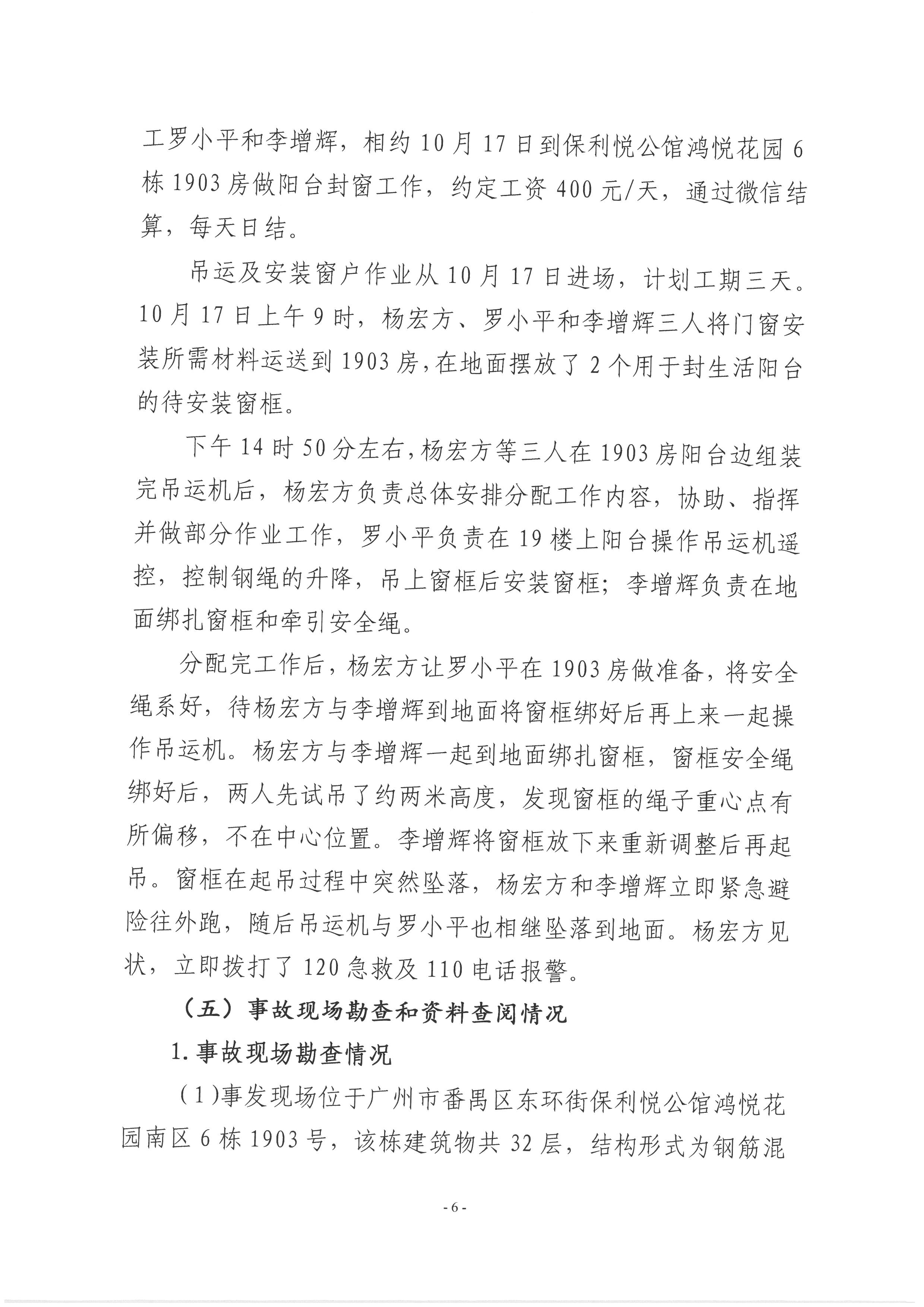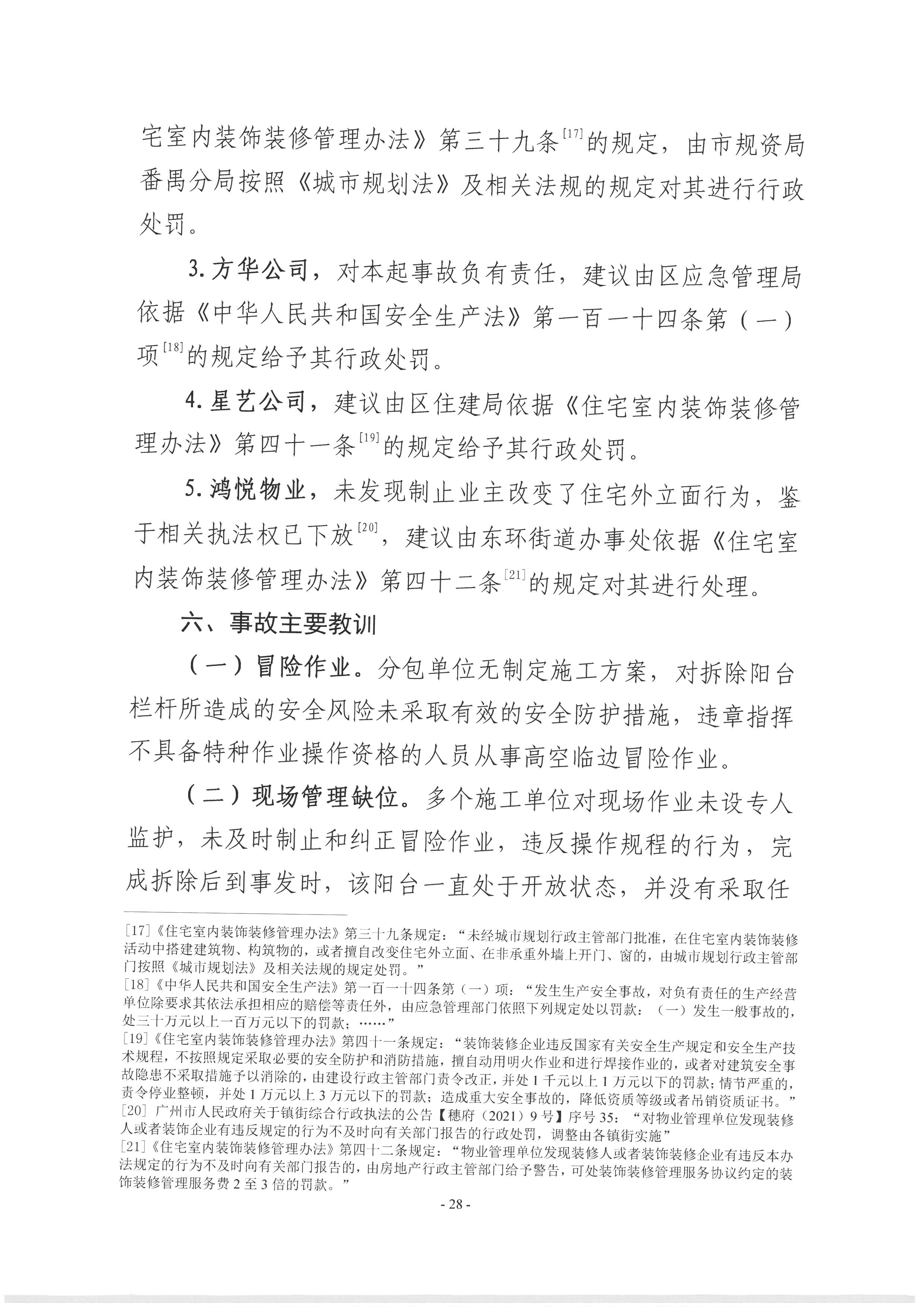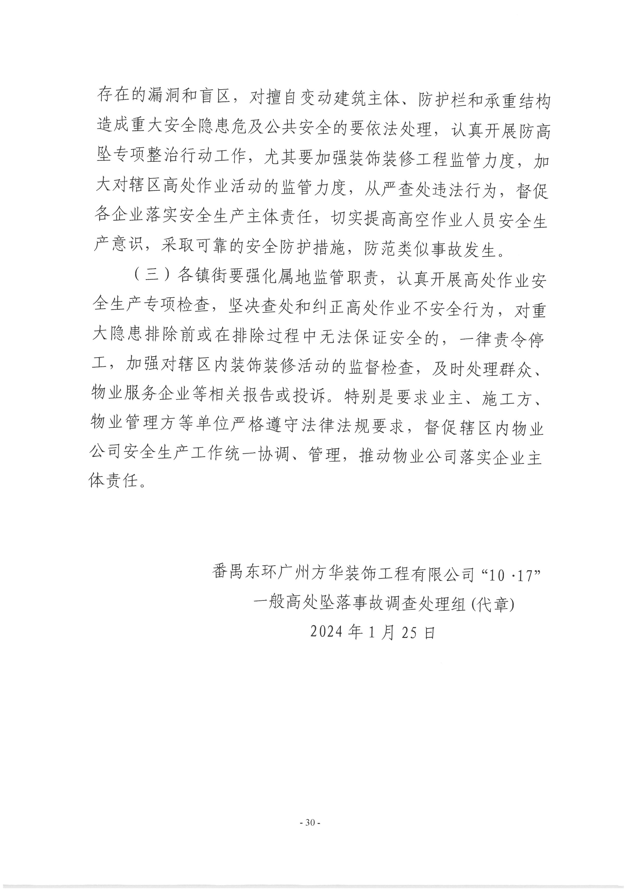 番禺東環(huán)廣州方華裝飾工程有限公司“10·17”一般高處墜落事故調(diào)查報告