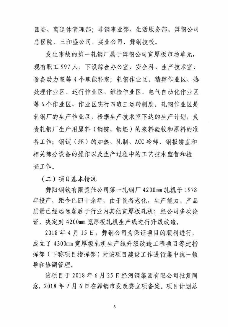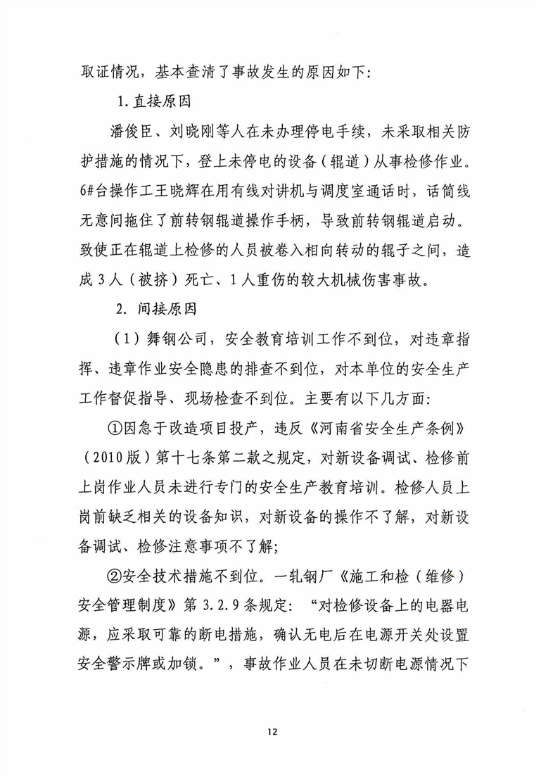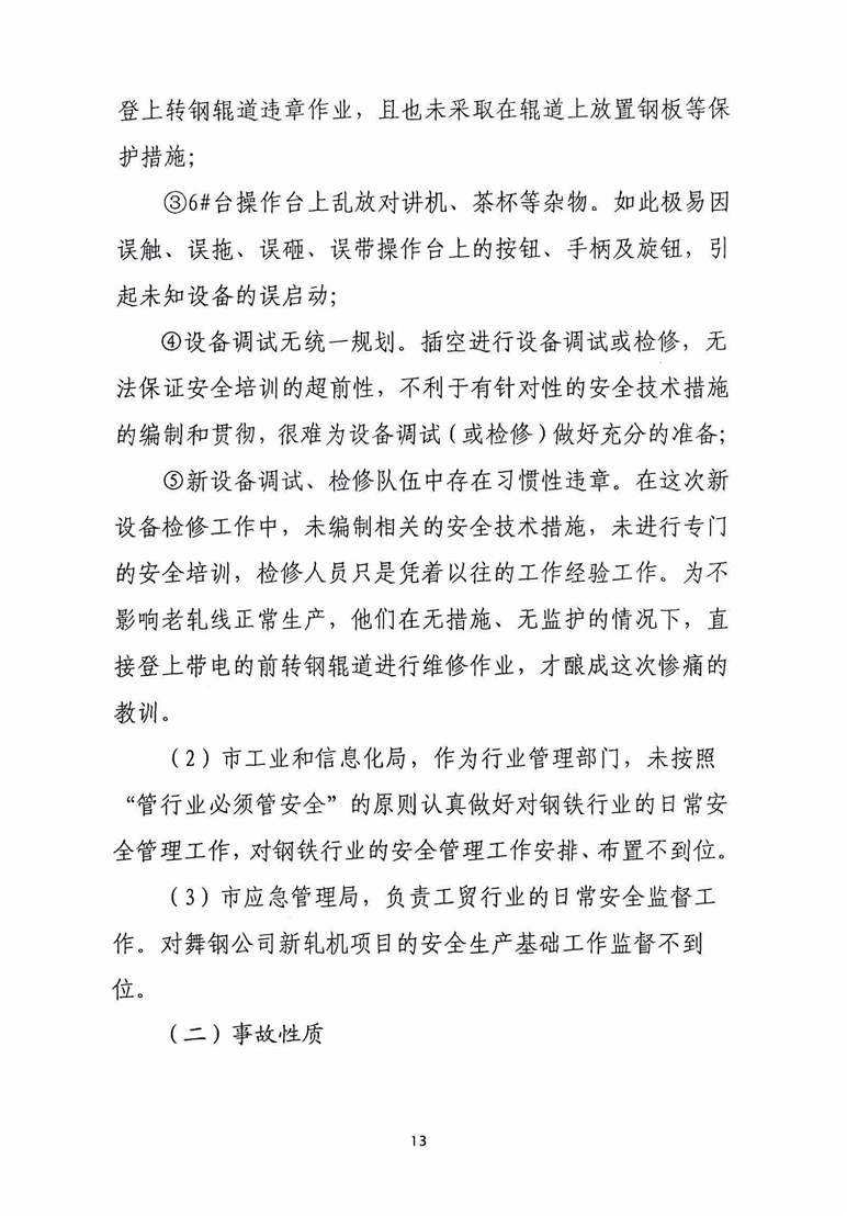 (3)市應急管理局,負責工貿行業的日常安全監督工作。對舞鋼公司新軋機項目的安全生產基礎工作監督不到位。