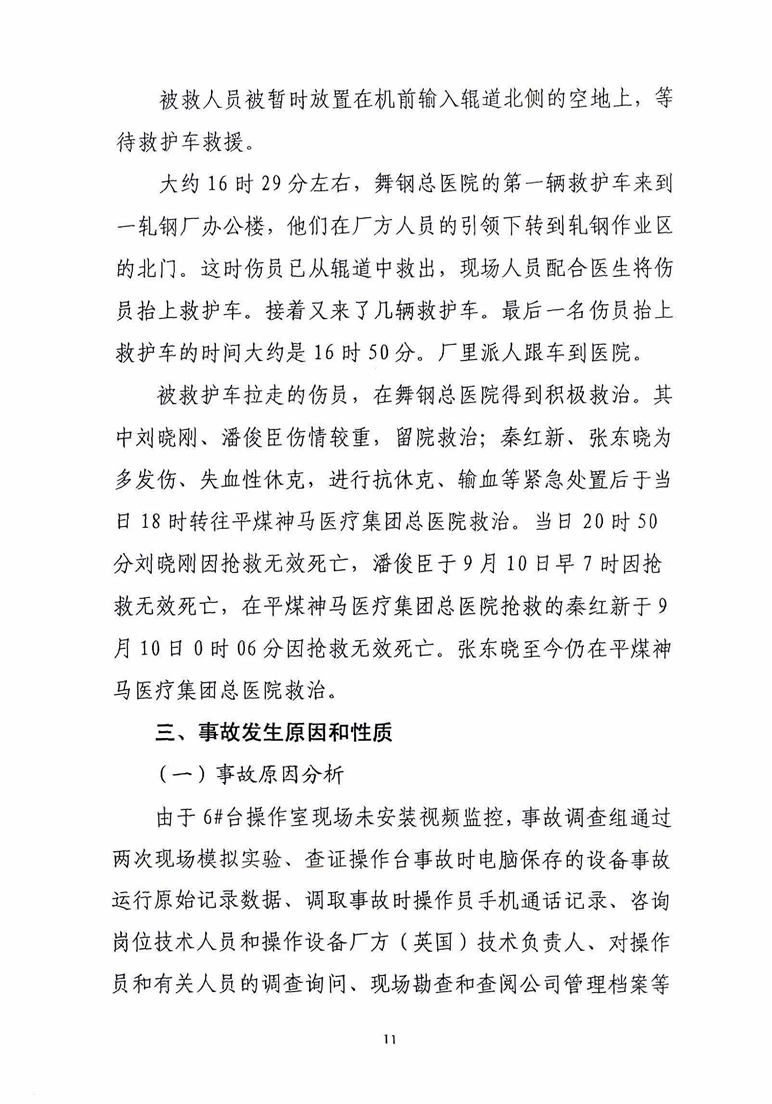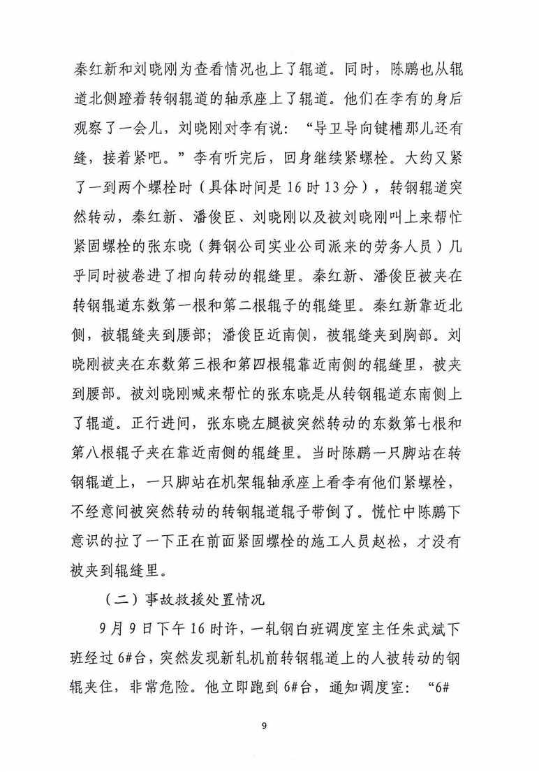 經調查認定:舞鋼公司這起“9·9”較大機械傷害事故是一起生產安全責任事故。