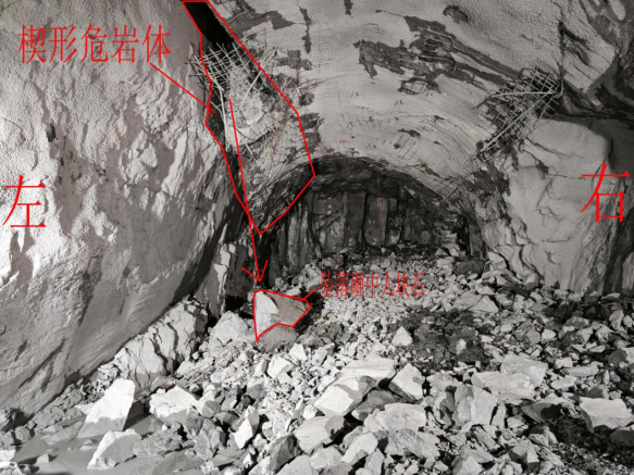 經事故調查組認定,廣西來賓抽水蓄能電站工程通風兼安全洞“10·12”冒頂事故是一起隧洞斷層及裂隙發育,局部圍巖隱蔽結構面發育切割巖體,系統及隨機錨桿由于穿越危巖體錨固失效,在自身重力作用下突然失去平衡,脫離母巖掉落發生的生產安全非責任事故。