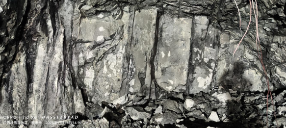 照片5 ?光面爆破孔及圍巖(節理裂隙交叉切割)