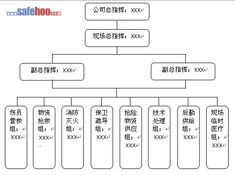 1、安全事故應急救援組織機構框架圖如下: