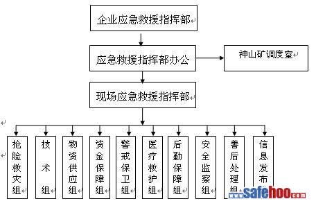 圖2-1-1 神山露天煤礦鍋爐燒裂事故應急組織指揮體系