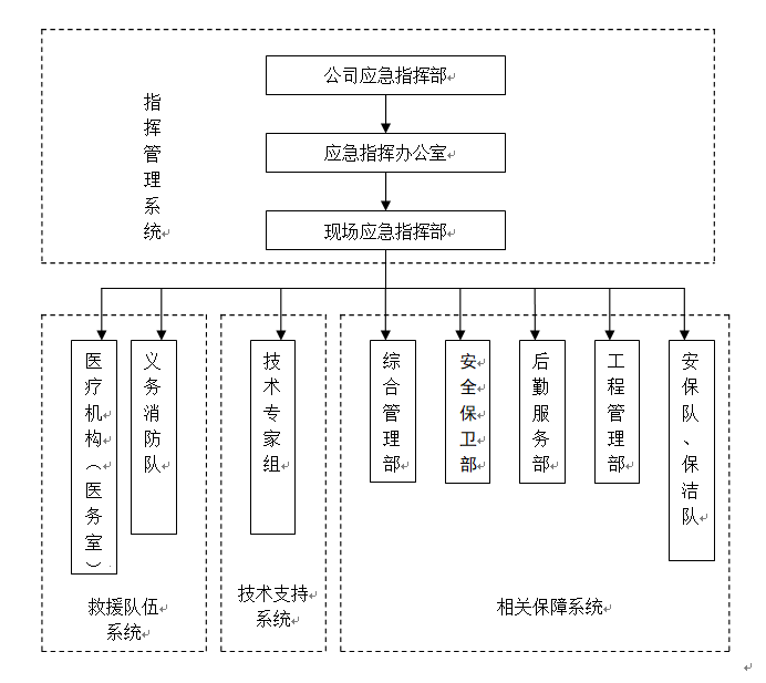 公司安全生產事故應急組織機構由公司安全事故應急指揮中心(以下簡稱應急指揮中心)、公司安全事故應急指揮中心辦公室(以下簡稱應急指揮中心辦公室)、現場指揮中心、公司各職能部門和支持保障部門、兼職應急隊伍等組成。