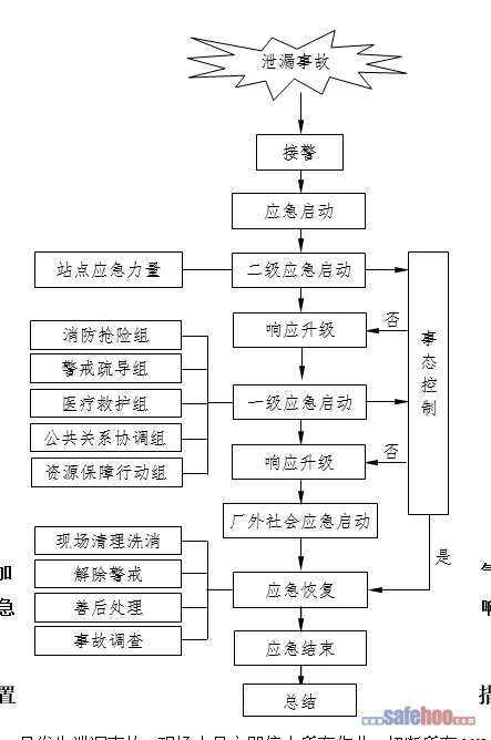 (1)當發(fā)生事故或接到指揮部應急響應的命令后,立即啟動二級響應,由站長任現(xiàn)場指揮。
