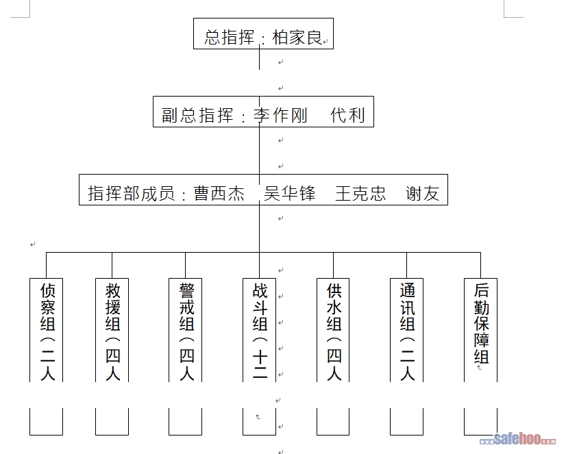 (1)供水車、泡沫車、搶險車各分兩個戰(zhàn)斗小組,指揮員帶領(lǐng)通訊員進入指揮所。