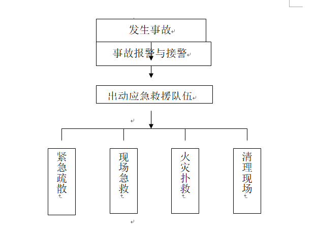 (1)當發(fā)生事故時,現(xiàn)場人員必須采取抑制措施,盡量減少事故的蔓延,由現(xiàn)場管理人員用對講機向調度室當班值班主任和調度室報告,值班主任再向作業(yè)區(qū)領導報告。同時值班主任組織當班人員趕赴現(xiàn)場,發(fā)生火災時,由調度室向消防隊報告,同時組織其他人員到現(xiàn)場參加搶險。參加搶險人員在做好自身安全防護的基礎上,控制事故的發(fā)展,并將傷員救出危險區(qū)域,組織人員撤離、疏散,做好清除工作。并進入事故應急程序。