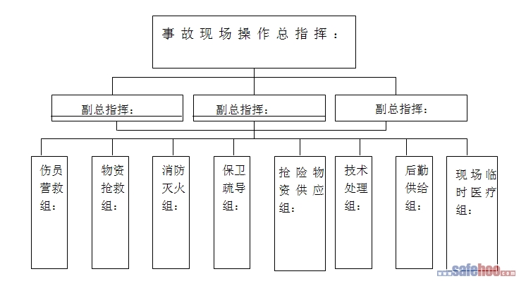 1、安全事故應(yīng)急救援組織機(jī)構(gòu)框架圖如下: