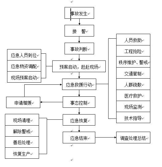 5.4事故應(yīng)急救援辦公室接報(bào)后應(yīng)立即報(bào)告應(yīng)急救援指揮組組長,組長接報(bào)后應(yīng)立即下達(dá)啟動(dòng)應(yīng)急預(yù)案命令,指揮有關(guān)部門人員趕赴事故現(xiàn)場(chǎng),勘察事故情況,通知相關(guān)部門就近調(diào)動(dòng)搶險(xiǎn)隊(duì)伍、機(jī)械設(shè)備實(shí)施應(yīng)急救援。啟動(dòng)應(yīng)急救援預(yù)案(在實(shí)施應(yīng)急預(yù)案的同時(shí)要判斷是否應(yīng)要求啟動(dòng)上一級(jí)應(yīng)急救援預(yù)案)同時(shí)應(yīng)向上級(jí)主管部門或主管領(lǐng)導(dǎo)匯報(bào)。