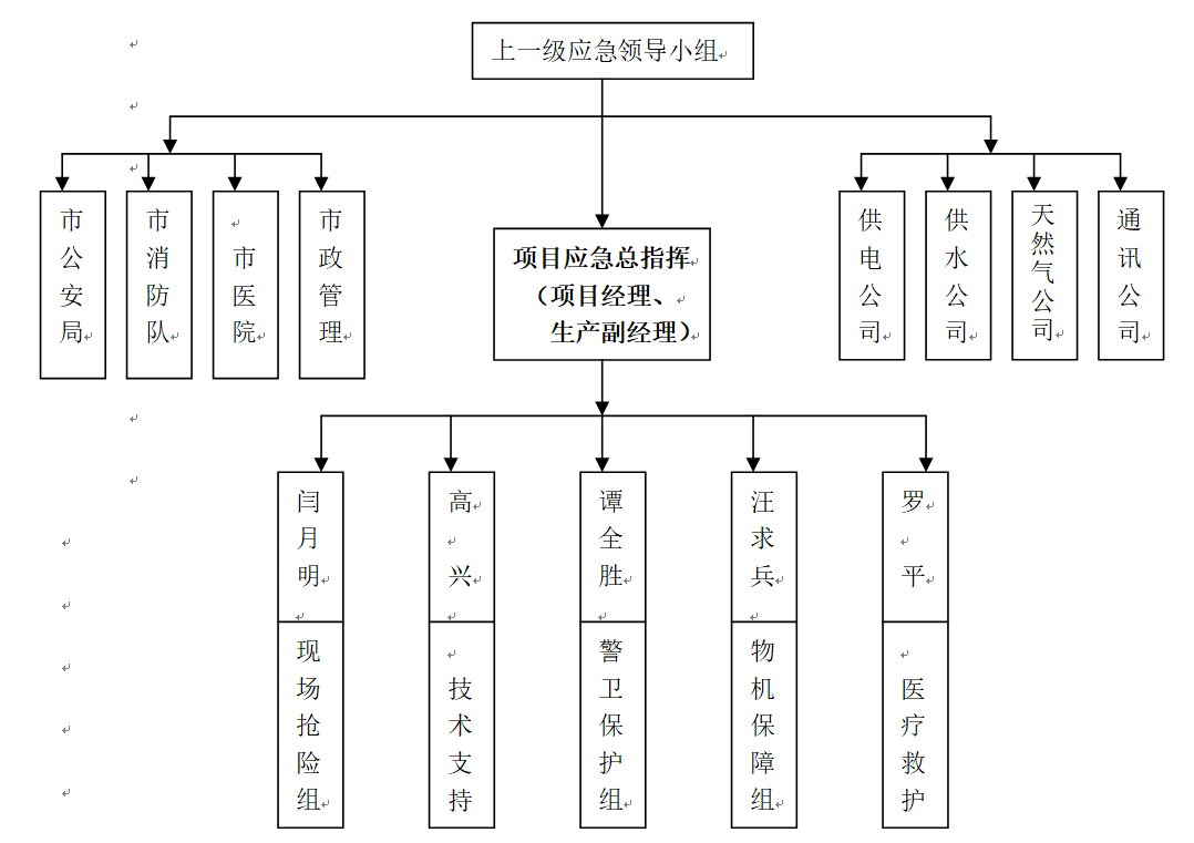 項目安全領導小組接到施工現場發生事故的報警并核實后,立即報告單位第一管理者,由單位第一管理者決定并正式發布啟動預案的命令。在同一時間向公司應急處理領導組報警。必要時,在同一時間向相關方和所在地有關部門報警(醫院、消防)。