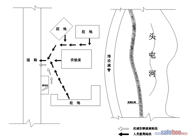 1、按照原國家《防汛檢查大綱》要求,逐項檢查落實,特別加強對道路、管理區、駐地用水設施的日常維護檢查及河道巡視,及時發現和消除安全隱患。當發生險情時,在業主和本項目指揮部的共同指揮下,立即啟動本預案。