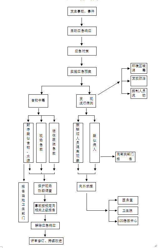 為了保護員工的人身安全,確保在食物中毒、流行病發生時,有條不紊地迅速搶救人員,損失控制在最低限度,為此制度《食物中毒、流行病應急救援預案》。