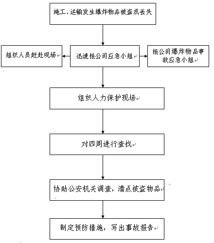 本著“安全第一,預防為主”管理原則,當公司爆炸物品在庫房、運輸途中、施工場所發生被盜、丟失、爆炸事故時,啟動本預案。