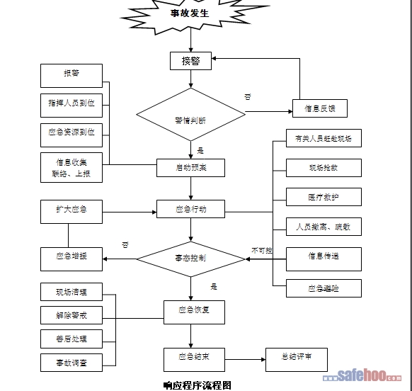 應(yīng)急響應(yīng)的過程為接警、警情判斷、應(yīng)急啟動(dòng)、控制及應(yīng)急行動(dòng)、擴(kuò)大應(yīng)急、應(yīng)急終止和后期處置。