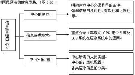 ??? 信息管理中心是應急救援系統中的五個中心之一,是一個事故現場應急的支持機構,為其它中心提供它們所需的各類信息以便于指導它們的應急行動和應急計劃的制定。