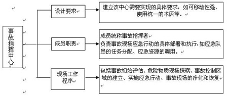 事故指揮中心是事故現場指揮部及其工作人員的工作區域,也是應急戰術策略的制定中心,通過對事故的評價、設計戰術和對策、調用應急資源、確保應急對策的實施、保持與應急運作中心管理者的聯系來完成對事故的現場應急行動。