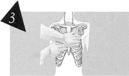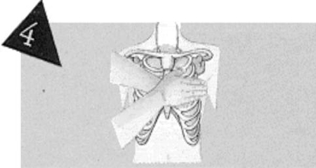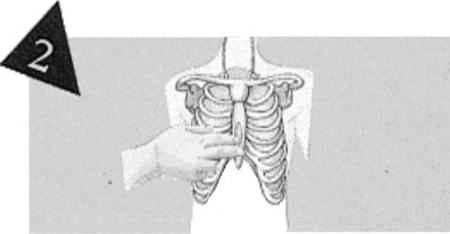 ??? 將另一掌的掌根緊靠在已定位的食指旁,使掌根的位置正好放在胸骨的中線上。