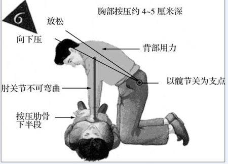 ??? 每次下壓時,應將胸骨壓下4~5厘米,放松時,手不施壓力,但不可移動手的位置。
