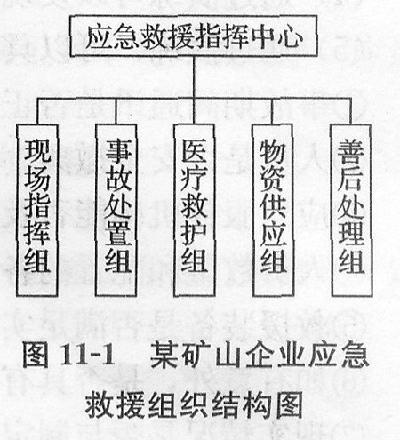 根據救援實際需要的情況,組成的各救援應急小組與指揮中心構成的救援組織如圖11—1所示。