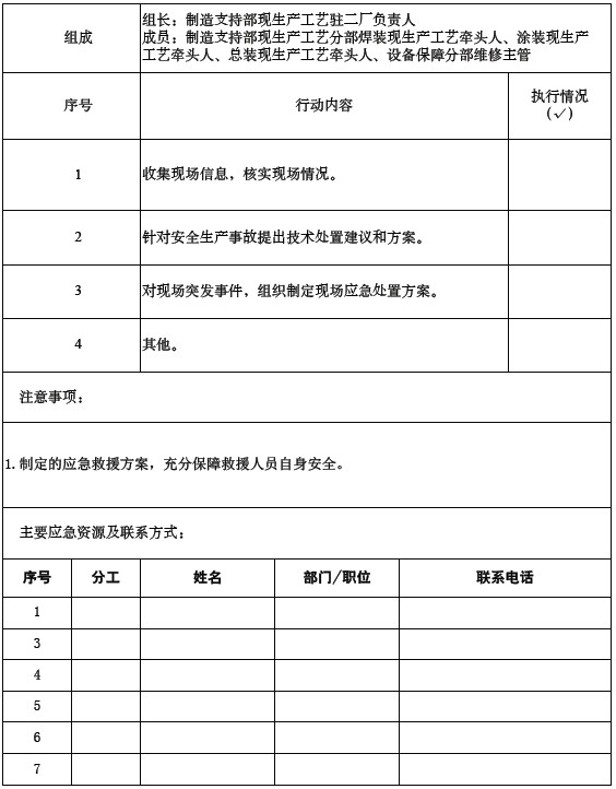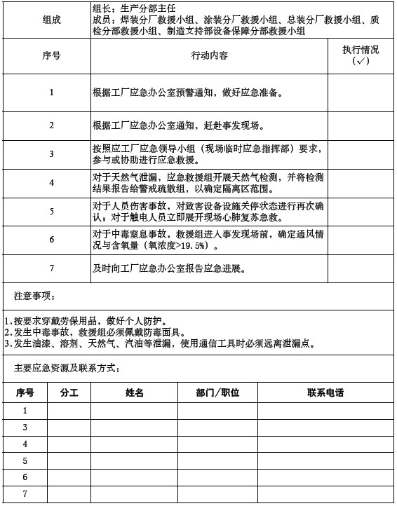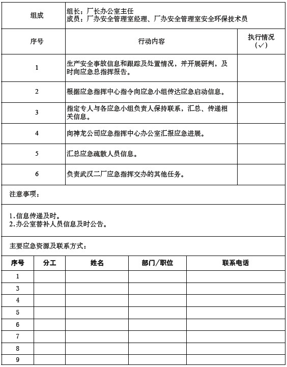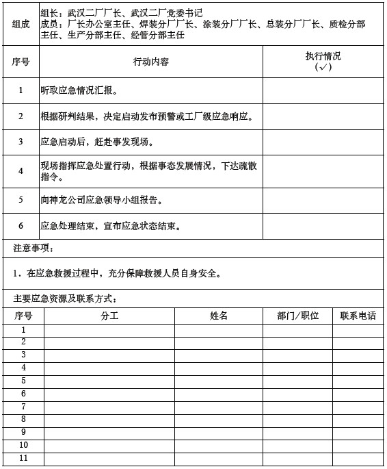 武漢二廠應(yīng)急領(lǐng)導(dǎo)小組應(yīng)急處置卡