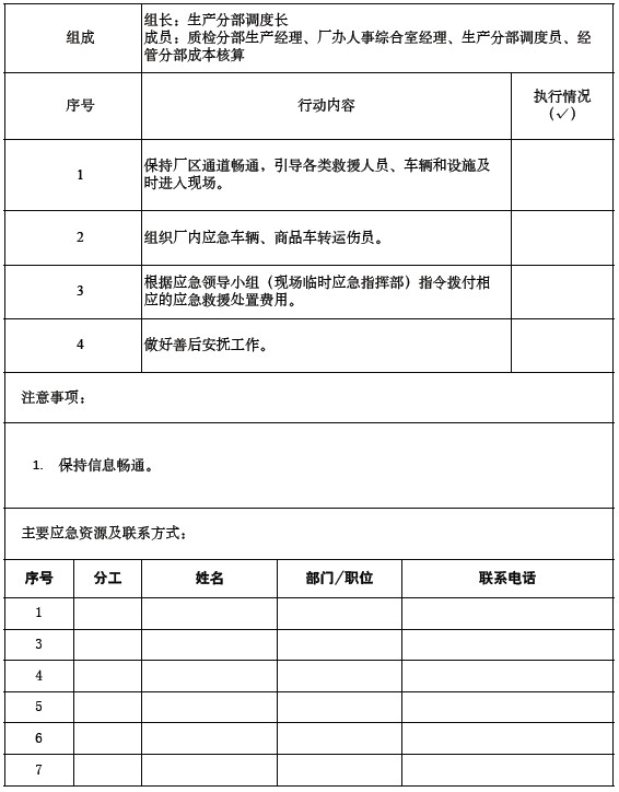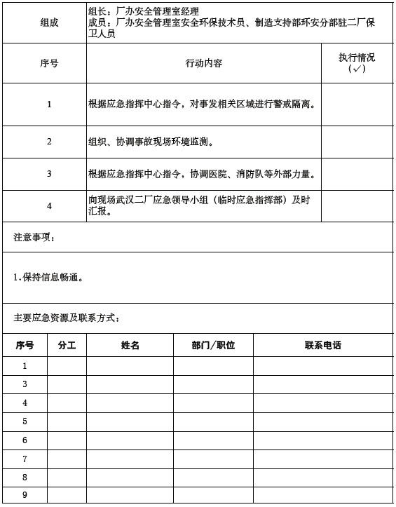 武漢二廠警戒疏散組應(yīng)急處置卡