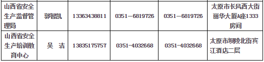山西省安全生產監督管理部門聯系方式 (報考條件咨詢、現場資格審核)