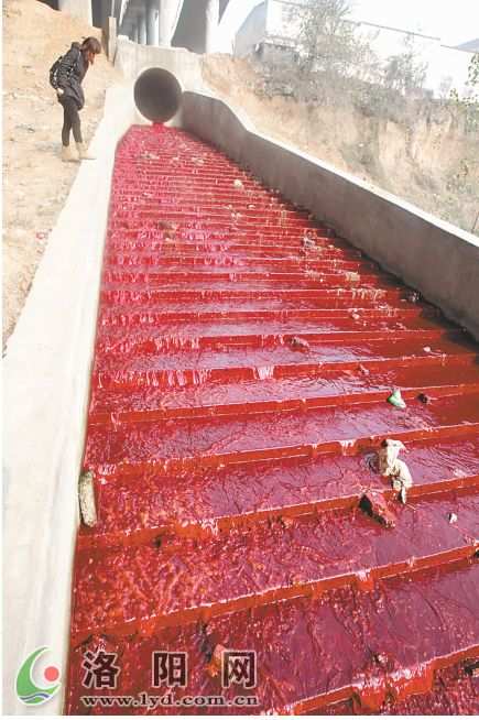 紅色污水進入澗河,并穿過市區流入洛河。?