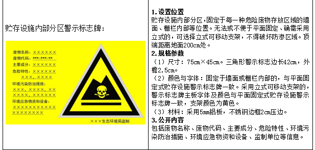 (1)廢物名稱:分區警示標志牌對應區域貯存的危險廢物名稱。