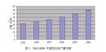 根據(jù)中華研普行業(yè)調(diào)研報告,國內(nèi)建筑垃圾產(chǎn)量預(yù)測圖1可知,2015年至2020年建筑垃圾產(chǎn)量逐年增長,到2020年時為39.66億噸。