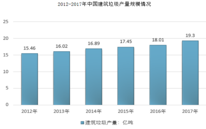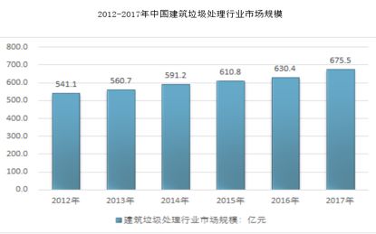 2017年我國建筑垃圾產生量約19.3億噸,每噸建筑垃圾的運輸與處置費用按照35元計算,2017年我國建筑垃圾處理行業規模達到675.5億元。