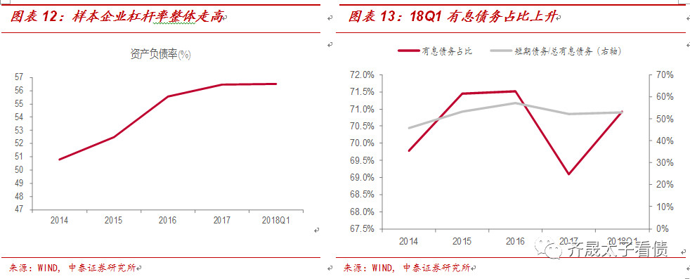 行業的債務杠桿雖未上升,但主要是受融資環境困難影響,三費收入比上升明顯,尤其是財務費用占比明顯提升,對企業利潤形成明顯擠占,2018Q1三費收入較2016年增加了1個百分比,企業的償債負擔加重。