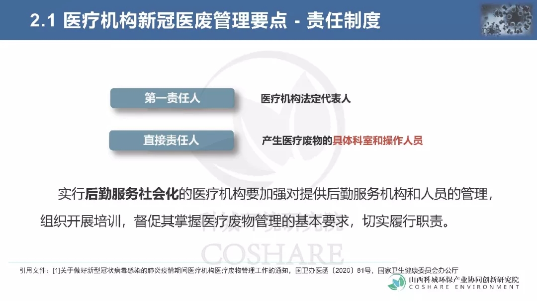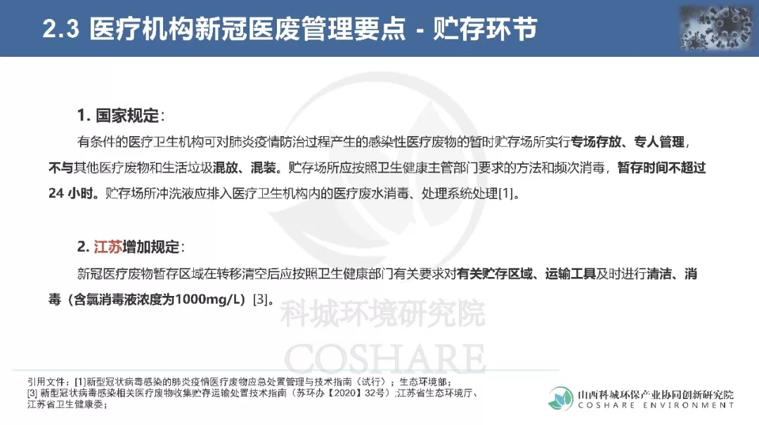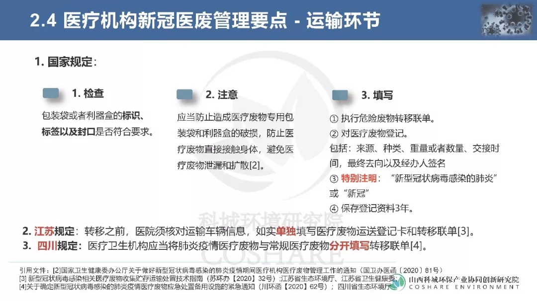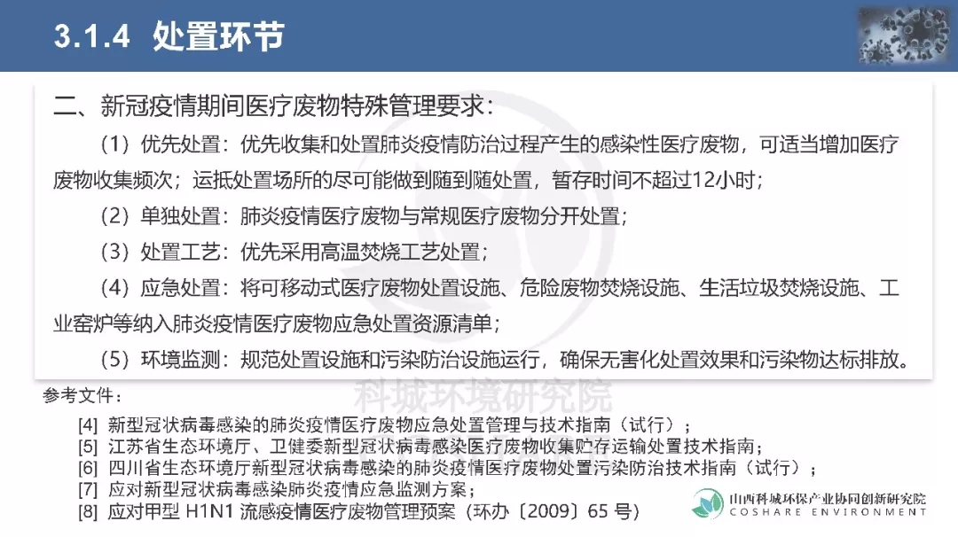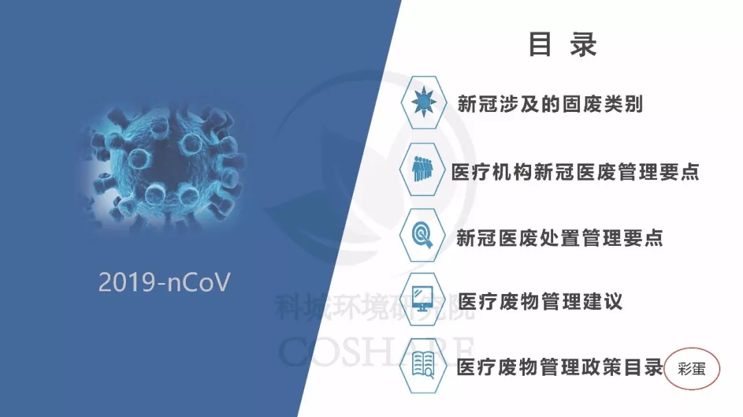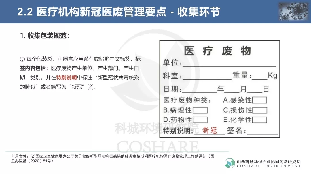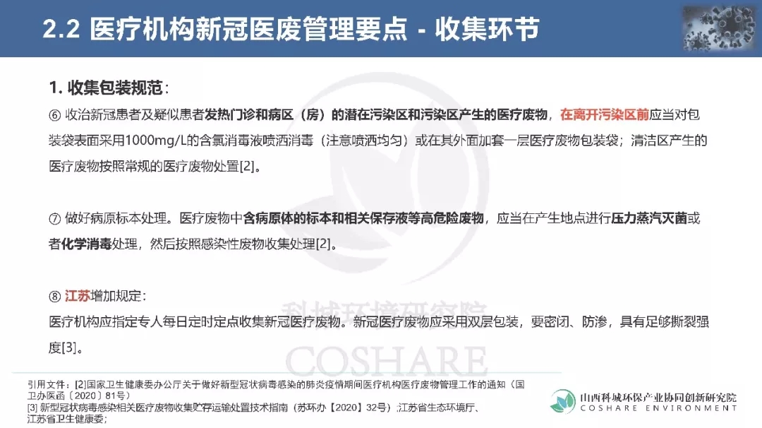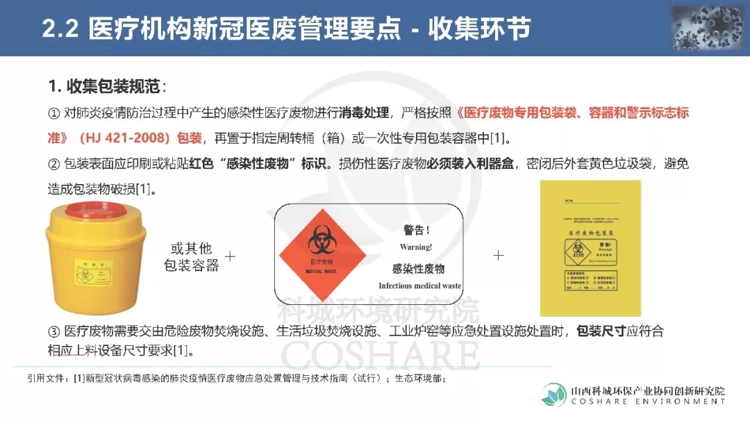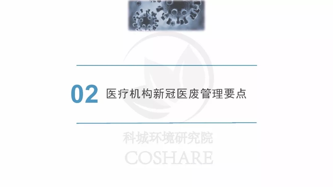 近期,新型冠狀病毒肺炎(以下簡稱“新冠”)疫情牽動著每一個中國人的心,隨著疫情的蔓延,醫療廢物的及時、有序、高效、無害化處置成為做好新冠疫情應對工作的關鍵環節。為確保新冠疫情期間醫療廢物合理管理,國家衛生健康委發布《關于做好新型冠狀病毒感染的肺炎疫情期間醫療機構醫療廢物管理工作的通知》(國衛辦醫函〔2020〕81號),生態環境部發布《新型冠狀病毒感染的肺炎疫情醫療廢物應急處置管理與技術指南(試行)》,各級管理部門也相繼發布相應的醫療廢物管理工作文件。為共同抗擊疫情,科城環境研究院針對醫療機構、醫療廢物處置單位梳理了新冠疫情醫廢環境管理要點,希望對醫療機構、醫廢處置單位、相關管理部門等有所幫助。武漢加油,中國加油!