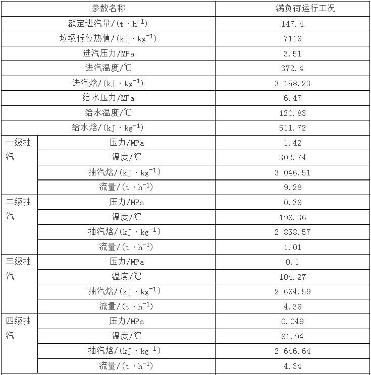 表1 寶安垃圾發電廠(二期)汽輪機技術參數