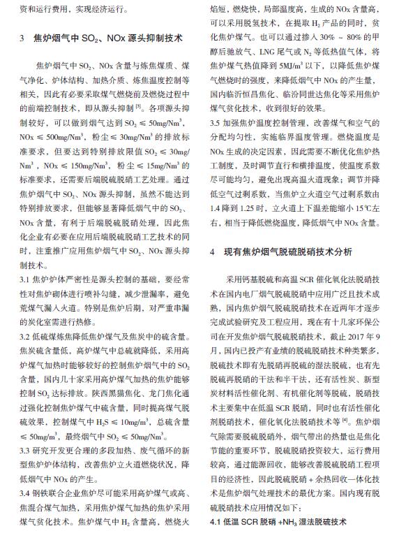摘要:分析焦爐煙氣脫硫脫硝技術現狀及技術進展,展望煙氣脫硫脫硝技術發展方向,為焦爐煙氣超低排放提供技術支持。