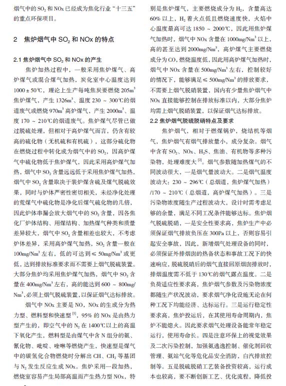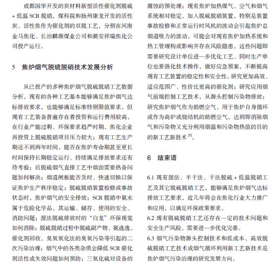 焦爐煙氣脫硫脫硝技術發展分析