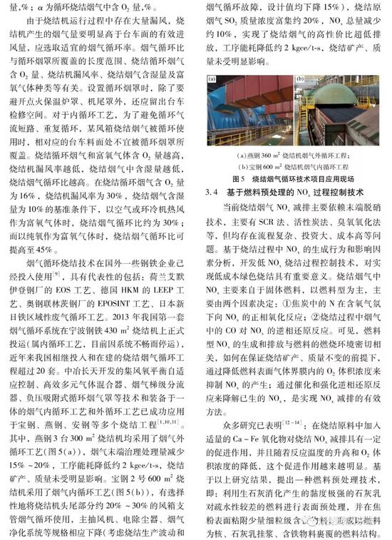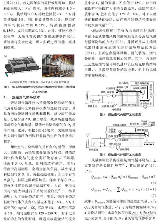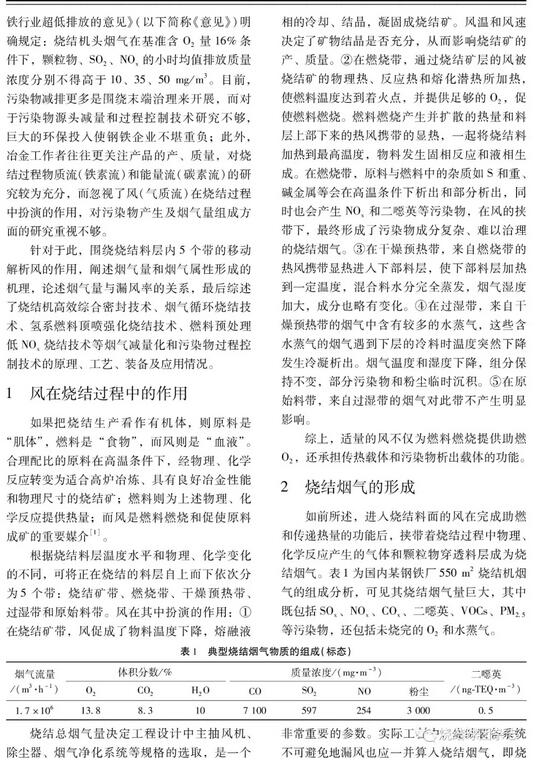 摘要:燒結工序是鋼鐵冶煉過程中高能耗、高污染的集中環節,是鋼鐵行業實現超低排放的重點和難點。本文聚焦于“風”對燒結生產的功能作用,提出了“風”是燒結生產過程的“血液”的比喻,燒結風不僅為燃料燃燒提供助燃O2,還承擔傳熱載體和污染物析出載體的功能;論述了煙氣及污染物產生的機理和煙氣量與漏風率的關系,若燒結機漏風率由40%降低至20%,則單位面積和時間內穿過風機的煙氣量可由94 m3/(m2·min)下降至71 m3/(m2·min)。此外,還介紹了燒結機高效綜合密封技術、煙氣循環燒結技術、氫系燃料頂噴強化燒結技術、燃料預處理低NOx燒結技術等燒結煙氣減量化和污染物過程控制技術的原理、工藝、裝備及應用情況。