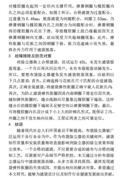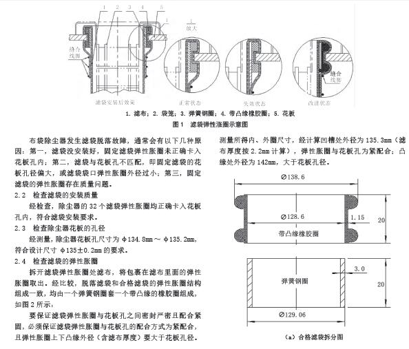 摘要:針對布袋除塵器運行中出現(xiàn)濾袋脫落的問題,對其原因進行重點研究,并且對濾袋彈性脹圈結(jié)構(gòu)、受力及其失效成因展開相信討論,最后提出相應的措施,解決故障問題。