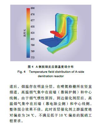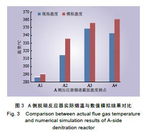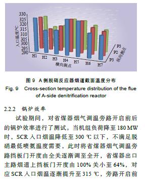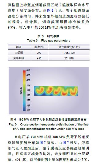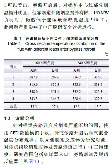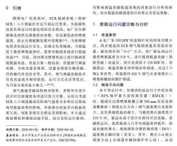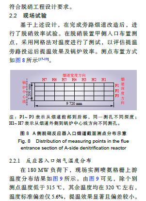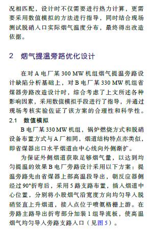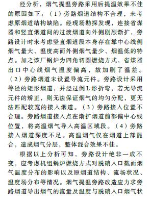摘要: 燃煤電廠低負荷運行時SCR脫硝裝置入口煙溫常達不到要求,某些電廠采用旁路提溫方法予以解決,卻出現調溫旁路提溫效果欠佳和煙溫偏差較大的問題。以A電廠某 330 MW 機組為例,在現場勘察基礎上采用數值模擬方法,找出問題所在:(1)旁路煙道結構不合理,未考慮原煙道結構缺陷;(2)旁路煙道未設置導流元件;(3)旁路接入位置不合理;(4)旁路接入煙道深度不足。在總結脫硝調溫旁路煙道設計和運行要點基礎上,采用數值模擬手段對B電廠某 330 MW 機組類似改造進行了優化設計,并開展現場試驗,對煙氣提溫效果進行評估。結果表明:B電廠煙氣旁路提溫改造效果顯著且煙溫偏差較小。