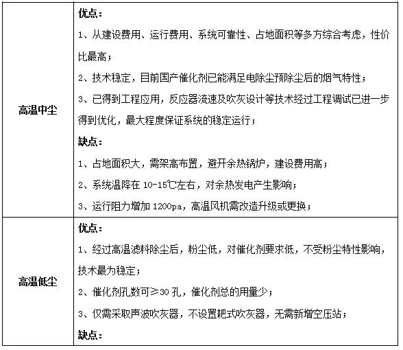 國內NOx排放標準遠高于國外標準,目前國內高溫高塵SCR、高溫中塵SCR已有工程應用,脫硝效果良好,能穩定運行,部分工藝細節仍在改進優化;高溫低塵SCR目前沒有運行案例,仍在推廣中;中溫中塵SCR中試運行穩定性不足,催化劑磨損、堵塞情況嚴重;中溫低塵SCR中試效果良好,但需對入口SO2、SO3進行控制,防止催化劑中毒失活,暫無工程應用;